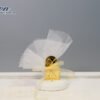 It is tied with organza and includes 4 almond cups or a chocolate heart.