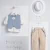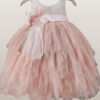 Dress with a V-shaped lace bodice, satin belt and tulle skirt with pearls.