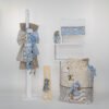Christening set of 3 pieces in shades of gray blue with initial name.