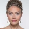 Earrings with a base in gold color. Decorated with fabric flowers in ivory color, pearls in pink color and rhineston