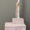 Cord lamp with gold circle and name initial Box rectangular velvet pink with lace. Oil bottle.