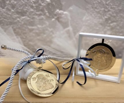 Baptism or engagement favor, a wonderful keychain with a cord and gold finish featuring an image of the Virgin Mary.