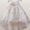 Piccolino Hara Ivory baptism dress. Lace bodice with heart-shaped neckline. Asymmetric tulle skirt. Satin belt with tie at the back. The decor of the dress consists of handmade flowers. The dress is accompanied by a bandana with a decor similar to the dress.