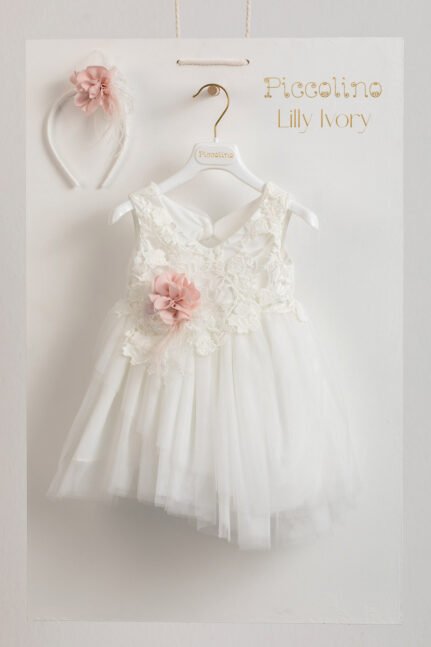ecru tulle on the part of the skirt; Back with beautiful opening with tulle bow tie from the straps.