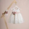 The dress is accompanied by a ribbon with a decor similar to the dress.