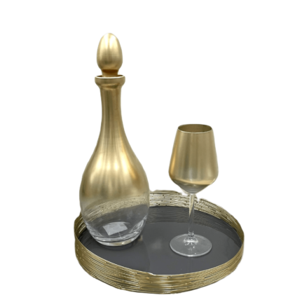 3 piece wedding set which includes Carafe and glass with gold decoration.