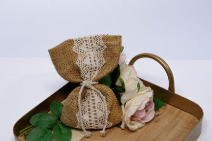 Μπομπονιέρα λινάτσα με φύλλο ...