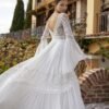 Οι λεπτομέρειες από δαντέλα προσφέρουν μια ρομαντική εικόνα. Αυτό το φόρεμα αποτυπώνει την εσάνς ενός παραμυθένιου γάμου με τη διαχρονική κομψότητα και τις ντελικάτες λεπτομέρειες του.
