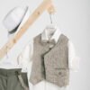 | Βαπτιστικό κοστούμι 6 τεμαχίων Piccolino Bob σε χρώμα Mint. Περιλαμβάνει κλασάτο γιλέκο βαμβακερό σε mint απόχρωση με μελανζέ λεπτομέρειες στην ύφανση, πουκάμισο λινό εκρού, παντελόνι βαμβακερό σε μπεζ χρώμα, παπιγιόν, φουλάρι, τιράντες και καπέλο με φάσα. Διαθέσιμο σε 4 μεγέθη 6-12, 12-18, 18-24, 24-36(εξτρά χρέωση) |