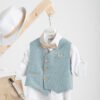 Περιλαμβάνει γιλέκο asia style σε γκρι ΄΄ψαροκόκκαλο΄΄, πουκάμισο βαμβακερό λευκό, παντελόνι βαμβακερό σε χρώμα light blue, παπιγιόν μιας κατεύθυνσης με μύτη στο τελείωμα, τιράντες και καπέλο με φάσα.